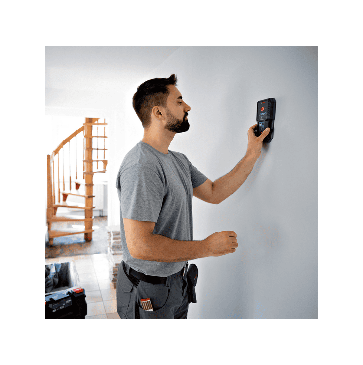Nuestro detector de pared GMS 120-27 Professional te ayuda a detectar y localizar metales, cables con tensión y subestructuras de madera en drywall. La localización de objetos en las paredes antes de perforar proporciona una mayor seguridad en el trabajo, especialmente para los obreros que realizan trabajos de renovación al instalar armarios, mesones de cocina, lavamanos, calentadores y sistemas de calefacción, o al instalar sistemas de aire acondicionado y rociadores.